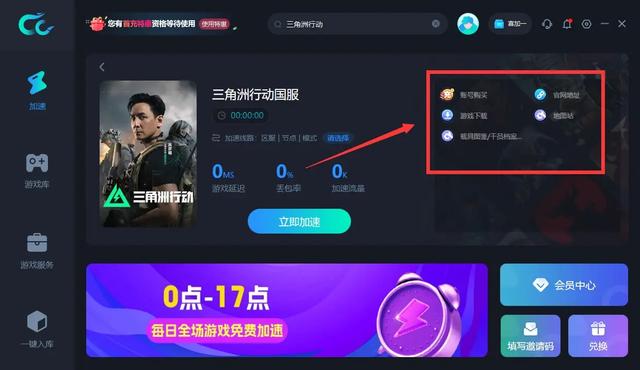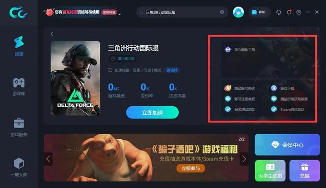 CC加速器中更有相关游戏辅助工具更新中。玩家们也可以进入CC加速器PC版中关注三角洲行动国际服。CC加速器每天17小时免费加速时长 ,快来体验吧!