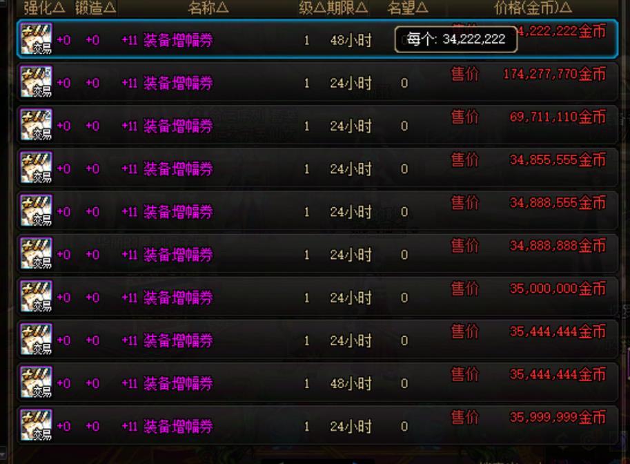 ②尤其是+13增幅券,开服12亿,现在开始摆8亿了。应该是一些小号金币上限制了。