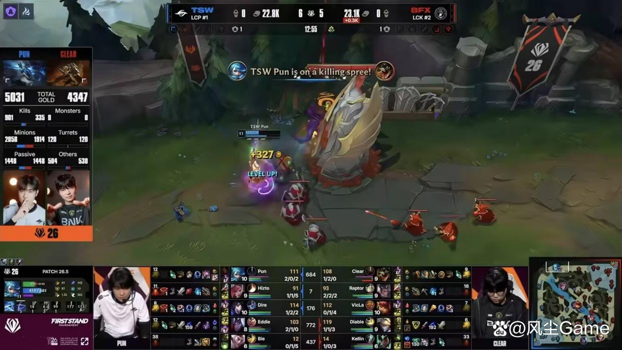第一把Pun操刀格温,前期不好打鳄鱼的情况下,依旧打出压制力,给到打野Gank的机会,拿到优势之后,直接越塔单杀鳄鱼,打出了巨大的对位差距,虽然团战很尽力在剪,但队友太拉胯了,格温只要阵亡,TSW就瞬间被团灭,第二把Pun掏出狗熊,前期被单杀,后续又单杀回去。
