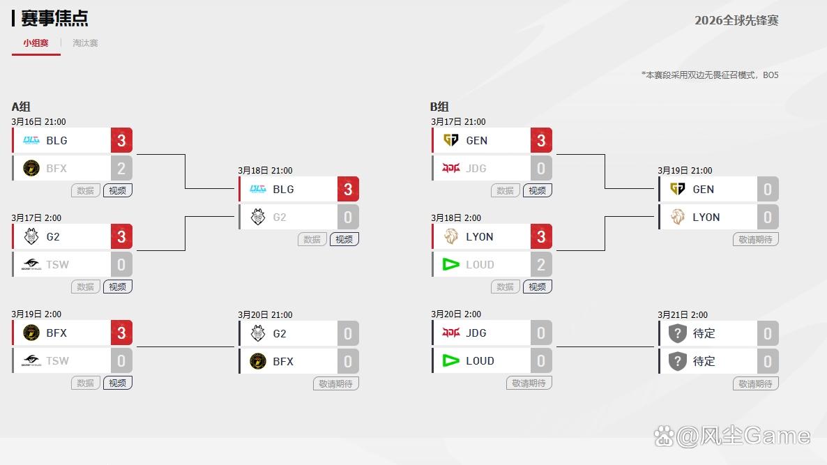 英雄联盟2026全球先锋赛,小组赛第二轮已经打响,LPL一号种子BLG,交手欧洲G2时,以3:0的比分完成轻取,率先打进淘汰赛,BLG赢G2在预料之中,但赢得这么轻松,属实是没想到,除了上单Broken Blade之外,G2剩下的几个选手,这场BO5的状态都很差,尤其是中路的CAPS。